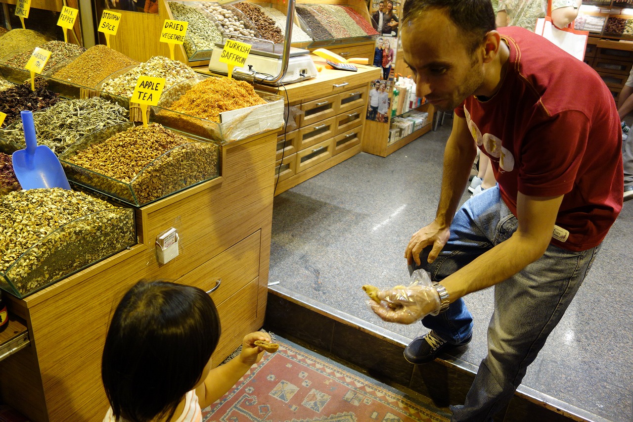 グランドバザールに比べて小じんまりとしています。食べ物やスパイスなどのお店が多いように感じました。購入する気が無くてもちょこちょこ味見をさせてくれるので楽しいです。が、通り抜けるだけでかなりのロクムを味見させてもらったので、買って帰る気にはなりませんでした。