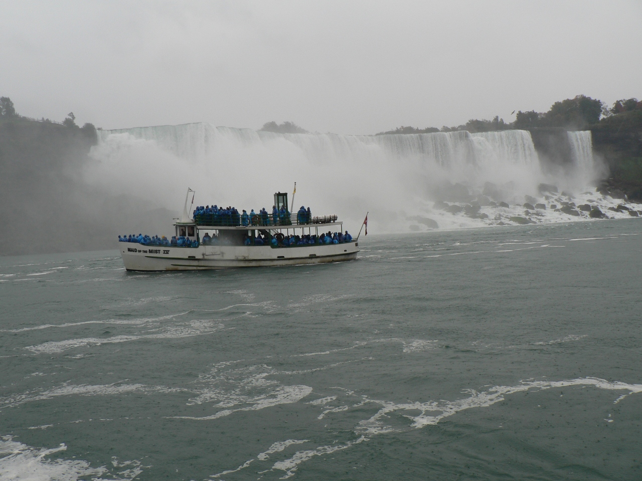 滝つぼの轟音と水の勢いを間近で体験できる遊覧船。受付でチケットを購入するとビニールで出来た河童を提供される。お土産品としてもち帰れる。船はカナダ側の滝つぼへ突入する。カメラも、顔もびしょ濡れだがみんなが大興奮している姿が面白い。所要時間は30分ほどだが十分スリルはある。