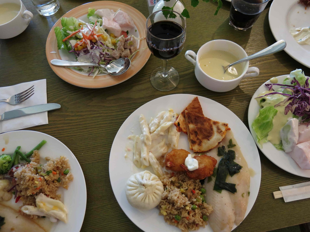 ランチを隣のThe Buffet Worldでいただきました。(ツアー料金に含まれているようですね)バイキングですのでお腹満腹。洋食・韓国料理が中心のメニューでした。お昼時でも、待ち時間なしでいただけました。水着はNGですので、着替えてからの食事になりますよ。
