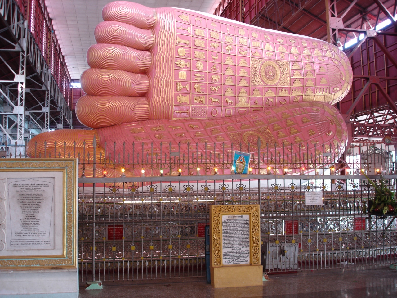 タイのアユタヤのシンプルな寝釈迦良いですが、こちらは70m近くあり表情もあるので迫力が違います。