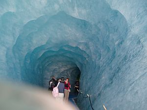 シャモニ駅から赤い登山列車に乗って20分。駅でモンブランマルチパスを買っておくと便利だし、お得です。目の前にメールド・グラス氷河が広がります。ロープウェイを使って下へ降りて氷河の中へ入っていくことをお勧めします。ロープウエイを降りてからも結構歩いております。また帰りはこの階段を上る事になります。