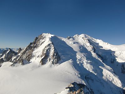 ロープウェイを乗り継いでモンブランを間近に見ることができます。シャモニに1泊してと朝7時頃のロープウェイに乗ると混雑も回避できます。途中駅のプランド・レギーユ(2317m)で一旦降りて高度に慣れてから エギーユ・デュ・ミディ(3842m)の展望台へ行く方が高所に慣れると思います。私たちはいきなり上ったので指先がしびれる軽い高山病の症状が出ました。青い空の中の白い雪をかぶったモンブランはとても美しいです。