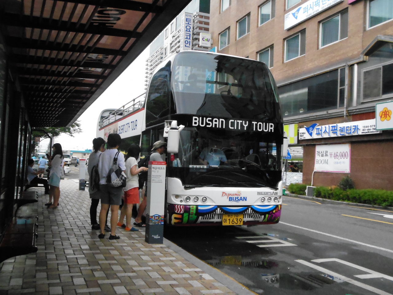 定番の海雲台コース、太宗台コースのほか、観光地を巡る数コースあります。海雲台コース、太宗台コースに乗車しましたが、海雲台コースがおすすめで、釜山の近代的な街並みや海を渡る海上橋を通ります。自分が乗ったのは両コースともオープンエアの2階建てバスでしたが、普通の2階建てバスや2階建てでない普通のバスもあるようです。そのバスが運航するのかは時刻表にも表記はないようです。たぶん天気によっても変わるのでしょう。上記の2コースは乗り降り自由ですし、料金もリーズナブルですので、利用する価値大だと思います。