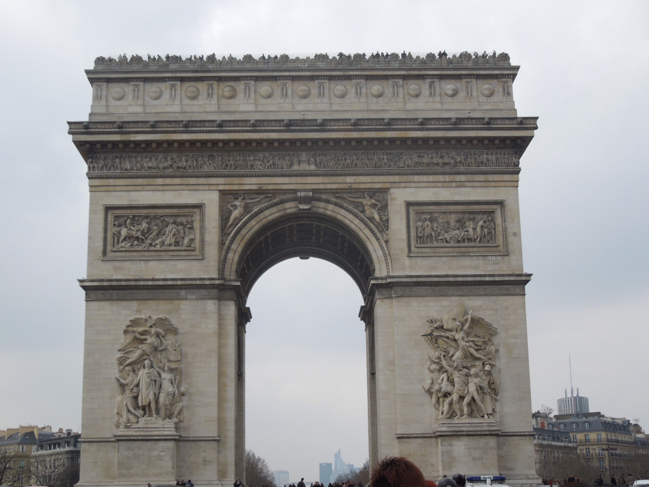 写真ですが凱旋門のすぐ下からだと凱旋門が大きく上手く写真に収まらなく、おすすめは地下道を通りシャンデリゼ通り側に出て凱旋門前の横断歩道の真ん中から撮るのがおすすめです。観光の人が多く写真を撮っていて中央分離のスペースもありますが車に注意です。