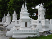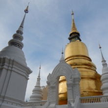1383年に当時のクーナー王によってランナータイ王宮の庭に建立された寺院で、境内にたくさん白い仏塔が立ち並んでいる。この中には歴代の王の遺灰が納められているそうで、青い空をバックに、金色に輝く仏塔と白い仏塔はスアン・ドーク(=花園)の名前にふさわしい美しい光景だった。本堂には坐像と立像の巨大な仏像が背中合わせに置かれていて、こちらも必見だ。