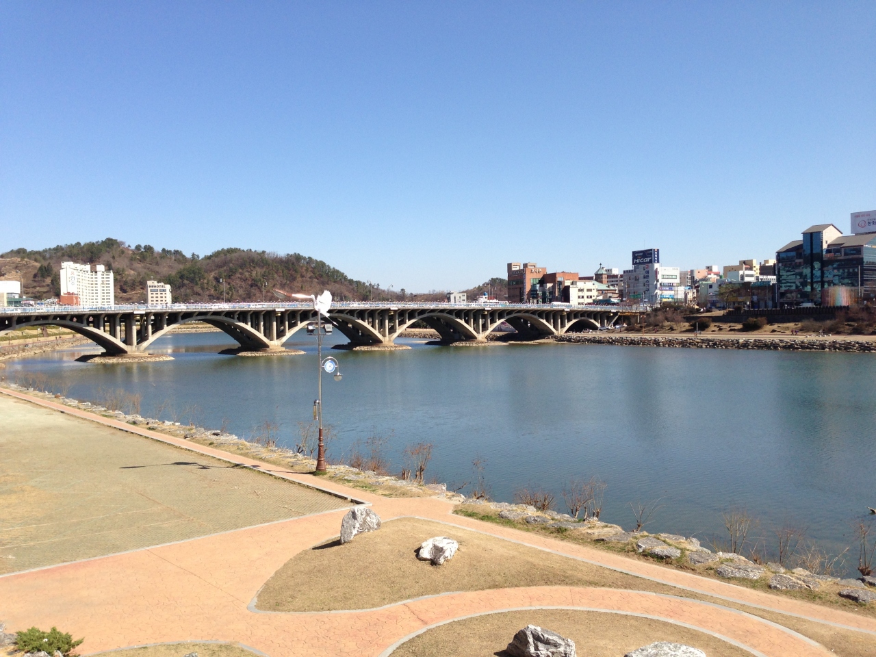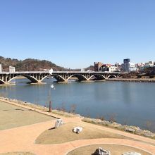 晋州城址は大きな公園になっており、その南側には南江が流れ、川沿いを散歩するだけでも美しく気持ちいい町。