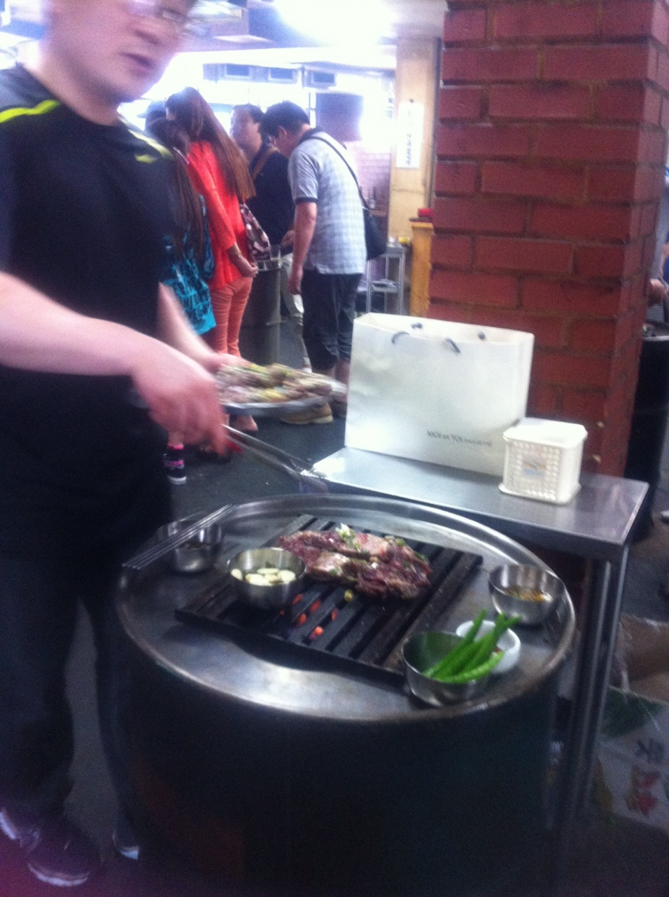 椅子はなく、立ちながら焼き、立ちながら食べるというスタイル。