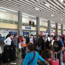 フライト出発時刻の2時間前(14:30)に着くと、LANのカウンターの前は写真のような長蛇の列。クスコ−リマ間は30分おきにシャトル便のように出ているので、チェックインが集中します。