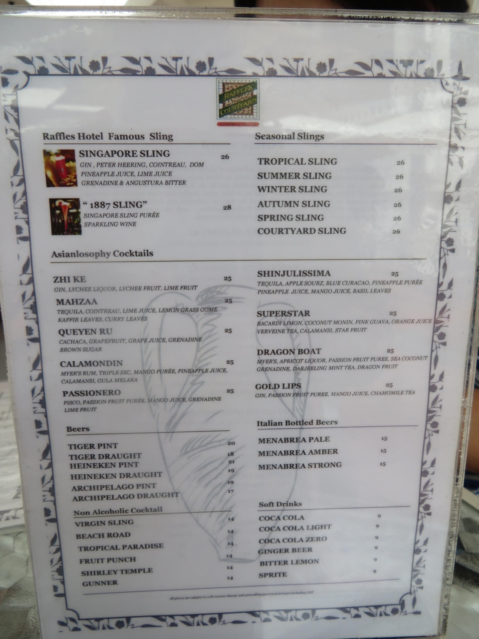 たださすがにラッフルズホテルだけあり、お値段は高めです。