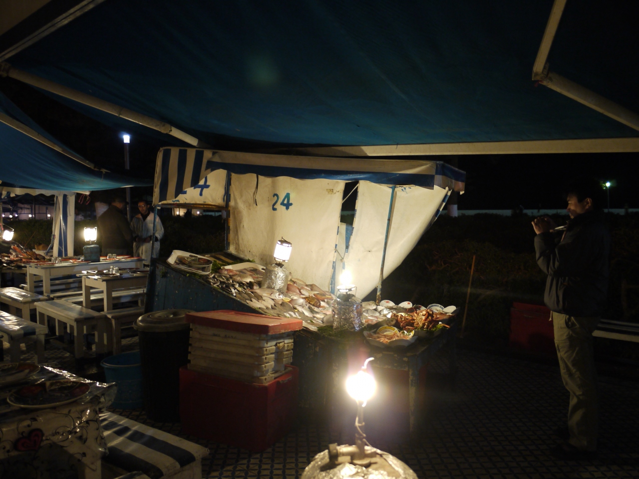 店先には魚屋のように魚介がずらっと並べられ、