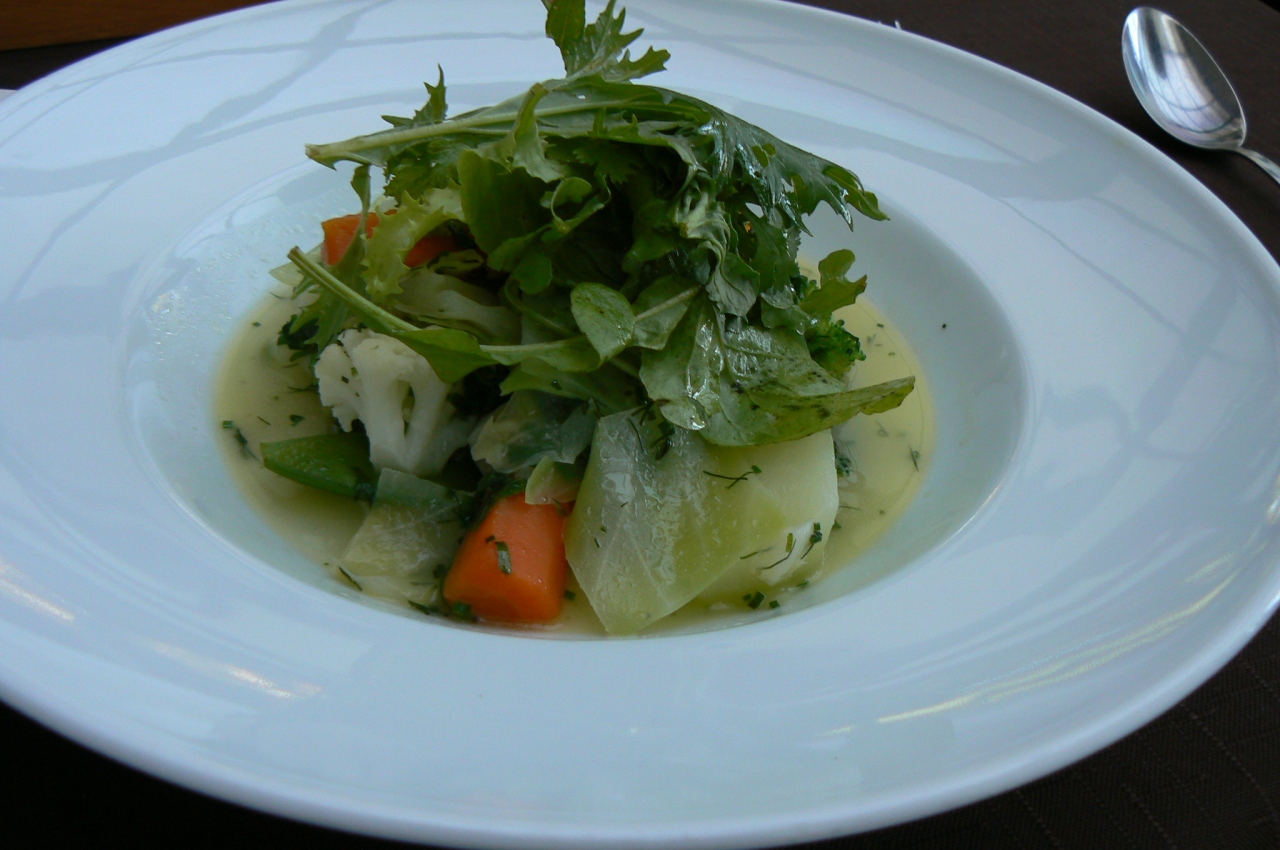 メニューは前菜からデザートまで英語で書かれていました。量が多いと聞いていたので野菜のシチューとレモネードのみオーダー。歩き疲れていたのでレモネードで生き返りました。野菜のシチューはハーブが利いていてとても美味しかったです。ライ麦パンが2枚付いてきたのでバターをたっぷり塗って食べました。このパンお持ち帰りしたいくらい私の好みでした。ライ麦がしっかり利いていて硬めです。