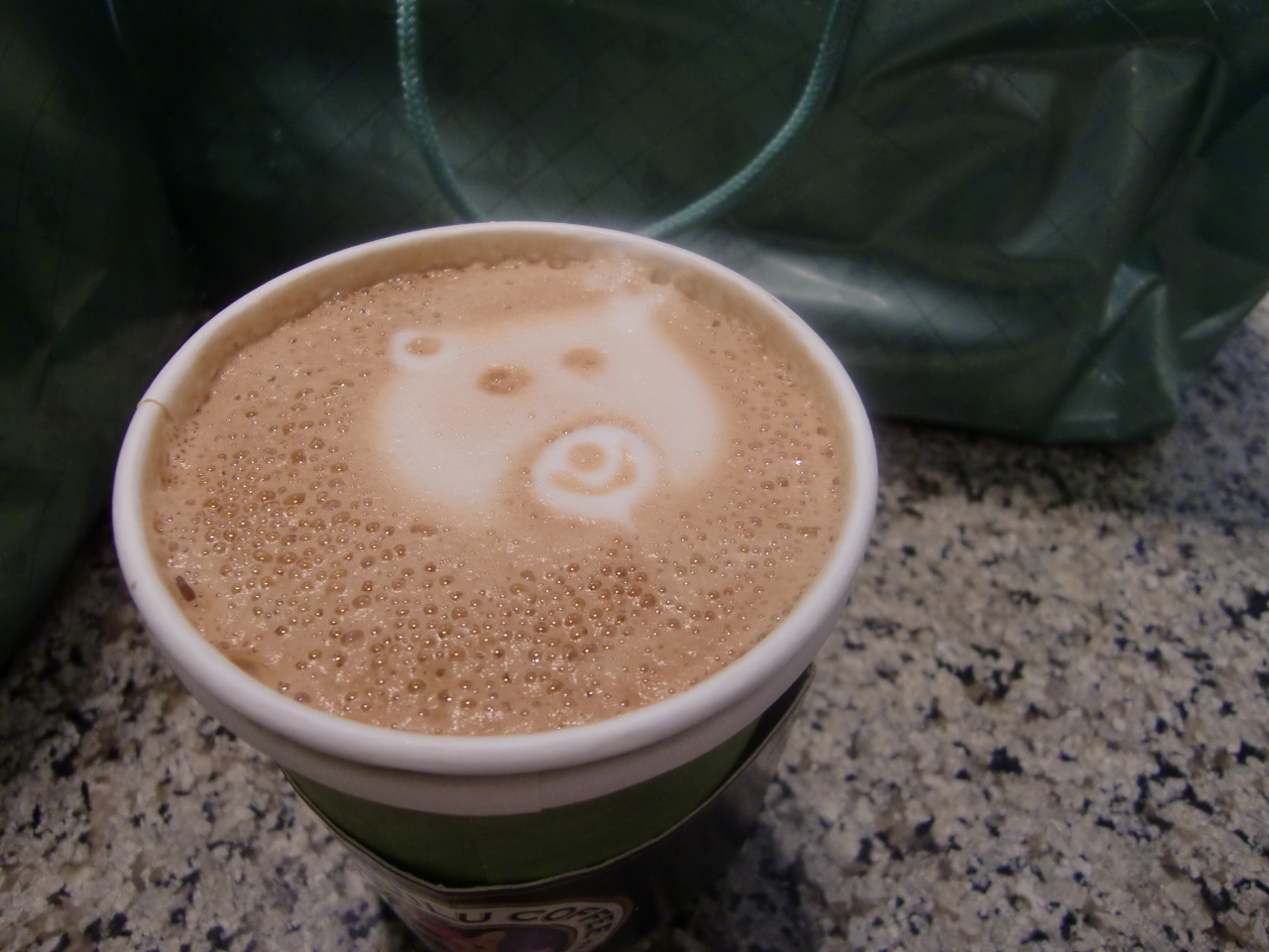 お兄さんがカフェラテの仕上げに、クマ書いてくれました。