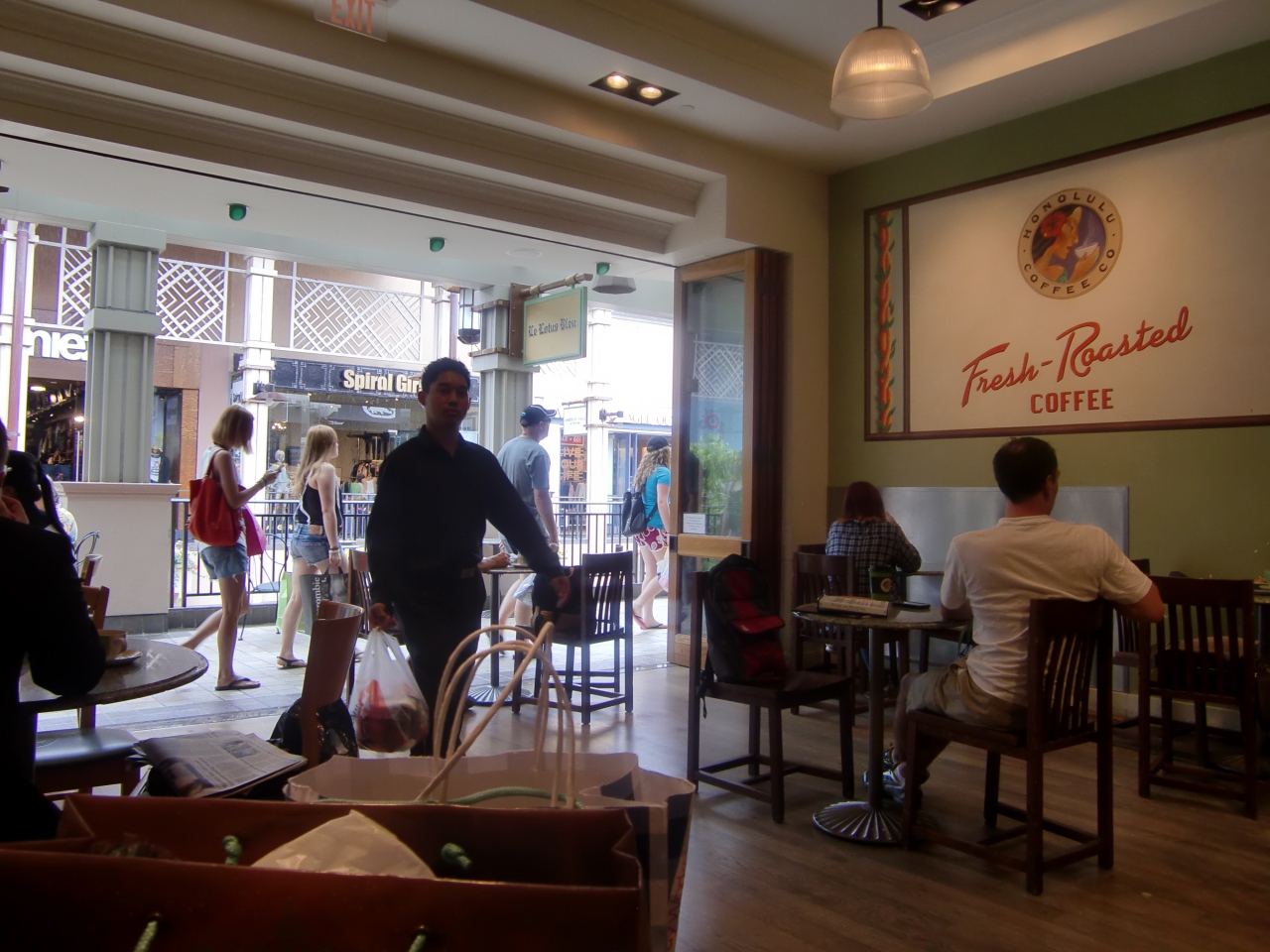 ハワイに来たら、行ってみてと言われて、定番のホノルルコーヒーにいきました。