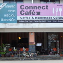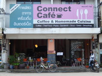 チェンライの第1バスターミナルの前にるコネクトカフェは、場所柄、バスの待ち時間に便利なカフェだ。店内にはかわいい犬がいて、人なつっこく寄ってくる。店内はアットホームな雰囲気で、何時間いても構わないような気楽さがあった。食事もできる。