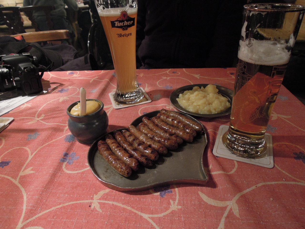 名物のニュルンベルクソーセージは偶数で注文するようです。10本で10.4ユーロでした。