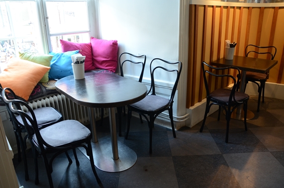 - ビストロの奥の方には、外の光が入る明るいテーブル席があってくつろげます。