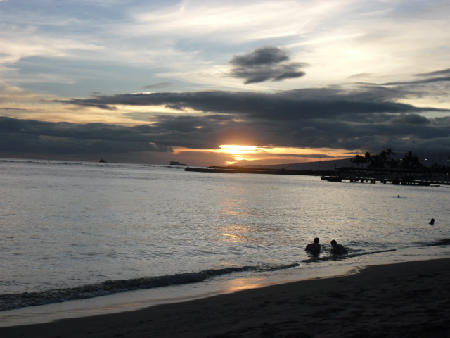 昼下がりに初めてワイキキビーチを見て、驚きました。ブルーやグリーン、さまざまな色合いの明るく美しい海!グレートバリアリーフでも、沖縄でも、グアムでも見たことのない、独特の色合いでした。時間や見る角度によって色が変化するので、見飽きることがありません。この海を見るためだけにでも、ハワイに行く価値があると思いました。
