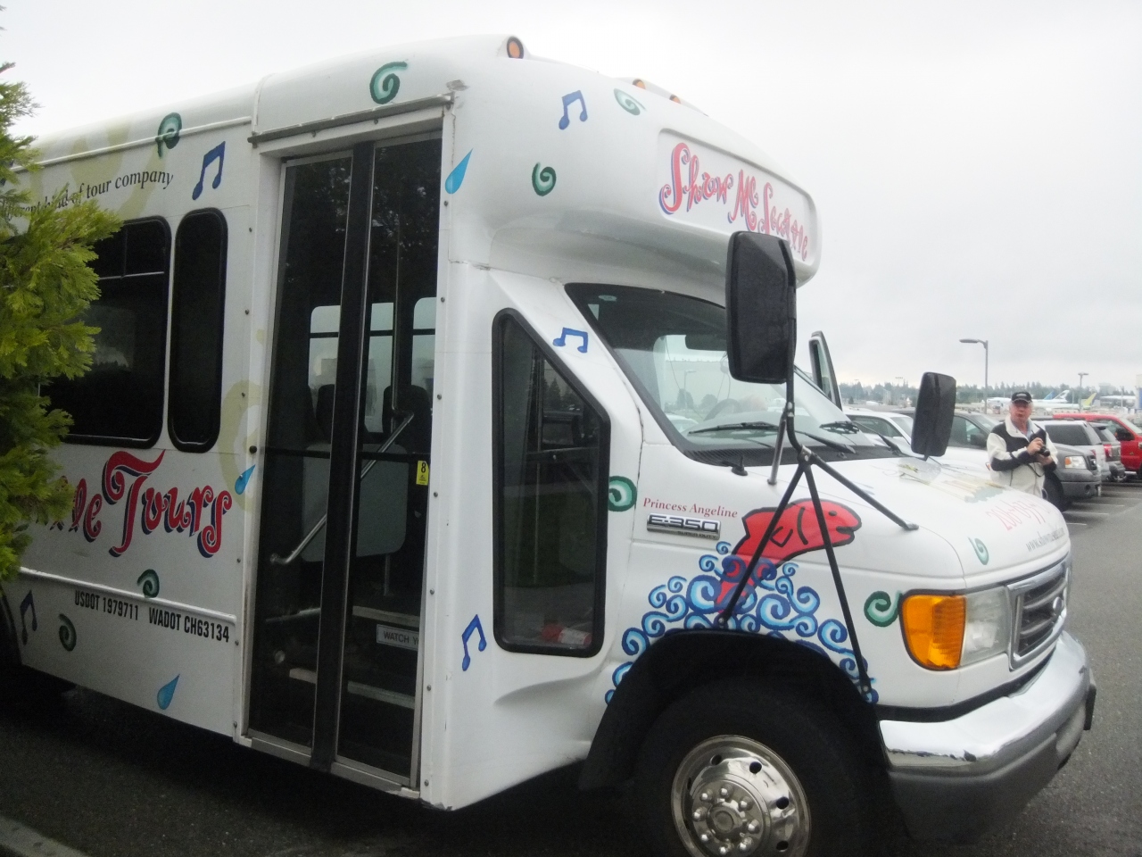 Boeing Factory Tour With Transportation From Downtown Seattle Hotels (Mini Coach) という現地英語ツアーに参加しました。日本語ツアーもありますが送迎、見学は英語とか意味不明内容で高額。このツアーはダウンタウンホテルから送迎付きで$65です。ホテルフロントで待ってると写真のバスで迎えに来てくれ幸運にも私が最後の客でボーイング工場へ直行。約30分で到着。ガイドのおじさんが一緒に案内。ツアーにはカバン、カメラ一切持って入れないので入って左手にあるロッカーに入れます。ガイドさんがロッカーの使い方を自分でやってみてくれて説明。貴重品(財布やパスポートは服のポケットにいれるといいよって説明してくれます)ロッカー案内は日本語も選べます。指示に従い$1入れてドアを閉めると取り出す時に必要な暗証番号の入った紙が出てきます。小学生でもわかるような丁寧な説明のあと用意された($18含む10:30出発)ツアーチケットが渡されます。やっとわかりましたがボーイングツアーは職員が案内するので日本人ガイドがそれに取って代わることはできず、日本語説明ありってのは一緒に客として入ってそばで要点だけ言ってくれるような感じになるのでしょう。ツアーは職員について行くだけ「STOP」と書かかれたとこまで歩いて「ここでガイドを待ちましょう」とか、とにかくわかりやすい。1時間半のツアーを終えた後はギフトショップで終了。集合時間は入口で午後1時なので丁度1時間あり。お土産を買いカフェで昼食がとれるという抜群の設定です。日本語ツアーは申し込みだけ日本語であとは迎えも英語とかで高額。それとホテル迎えが朝7:30と早いのもストレスだったので8:45~9:30迎えのこのツアーで大正解。9:30スタートでホテルに戻ったのは14:30。5時間は見といたほうがいいです。帰りはどこで降りたいか聞いてくれます。本当に親切なガイドのおじさんでした。一人でバスを乗り継ぐと2時間近くかかるのでこのツアーは超お勧め。コストパフオーマンス大!