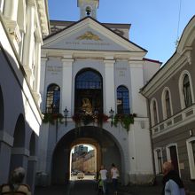 旧市街側から見ると外から見るのではかなり違います。聖テレサ教会の横側から入って門の上階部分に行けました。朝9:20に行ったときにミサが行われていた時は中が凄く混んでいました。パイプオルガン演奏が聞こえて雰囲気が出ていました。
