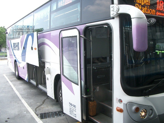 台北西駅から桃園空港まで空港バスを利用しました。乗り方は、台北西駅のバスターミナルで乗車券を買い、来たバスに乗ります。荷物はバスの腹に自分で入れます。バスは10分間隔で来ますから待ち時間は考えなくてもいいですよ。空港へは第1ターミナル→第2ターミナルの順に停車しますから、自分のターミナルを間違えないようにしてください。なお、バス会社は4社ほどあるようですが、私が乗ったのは国光客運という会社のバスです。