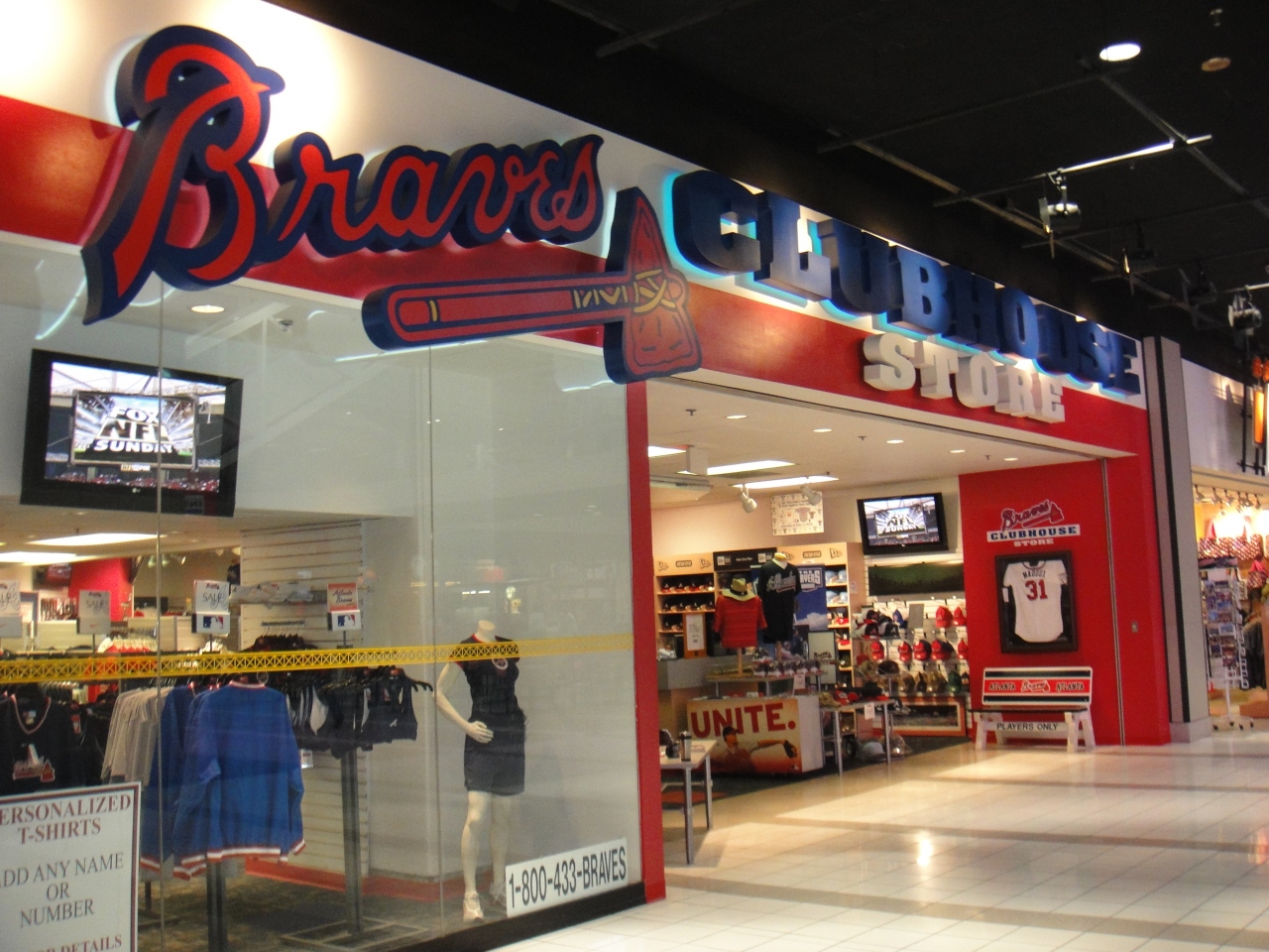 CNNセンターの中にあるアトランタブレーブスのクラブハウスストアー。入口にはブレーブスの黄金時代のピッチャー、マダックス投手のユニホームが飾られていました。当時は日本人選手がいたので、日本人選手のグッズも目立つ場所に売られていました。