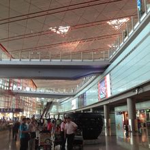 到着して思った印象は「広い」の一言でした。北京オリンピックが開催された影響なのでしょうが、想像以上にとても広く綺麗に保たれた空港でした。国際線だけでも大きいのですが国内線も就航しているようで、それぞれのターミナル間はモノレールのような乗り物で移動をします。
