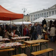 食事やお土産の屋台がたくさん出ています。屋台なのにクレジットカード可能で驚きました。食べ物はどの店も同じです一人旅で数種類食べれないので試食を提供しているお店で食べました。鮭スープ(クラコット付き)は日本の鮭お味噌汁が白くなったような(=ドロドロしたスープでなく)美味しかったです。