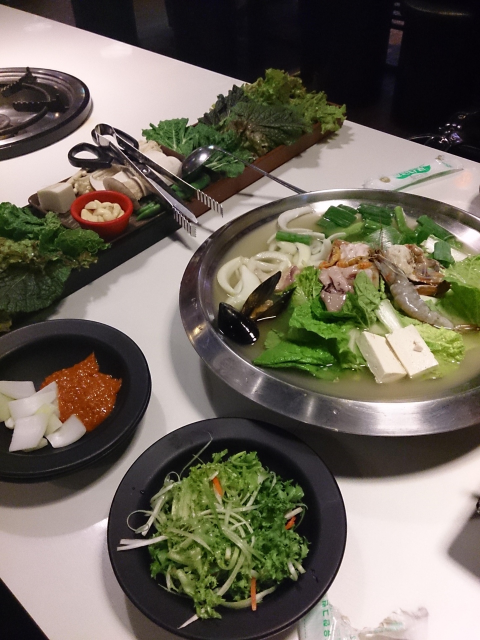 八色サムギョプサルにはお肉が運ばれる前にサービスで鍋がついてきます。