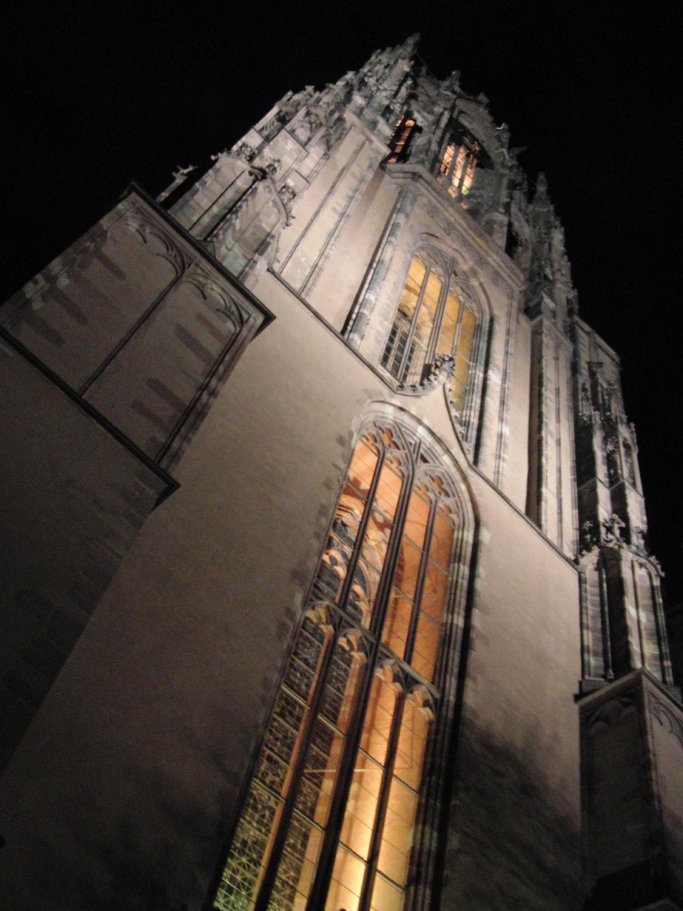 フランクフルトでの長時間トランジットの際、妻と共に訪れました。旧市街レーマー広場の東側に位置する大聖堂。その赤茶色の塔が空高くそびえる様子は荘厳そのもの。大聖堂の前に立つと、想像以上に大きく重厚感のある外観に惹き付けられます。夜訪れたのですがライトアップが荘厳さを倍増します。とにかく記念写真です。