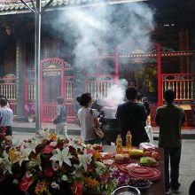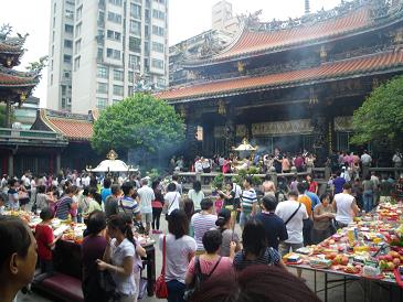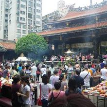 7月14日に訪問しました。最寄りのMRTの龍山寺駅からは100mちょっと。参拝客の数がハンパじゃないです。台湾最古のお寺で、その歴史の過程であらゆる神様仏様が祀られるようになったとか。そのため、あらゆる人々が参拝に訪れるのでしょうか。まるでお正月のように混んでいました。