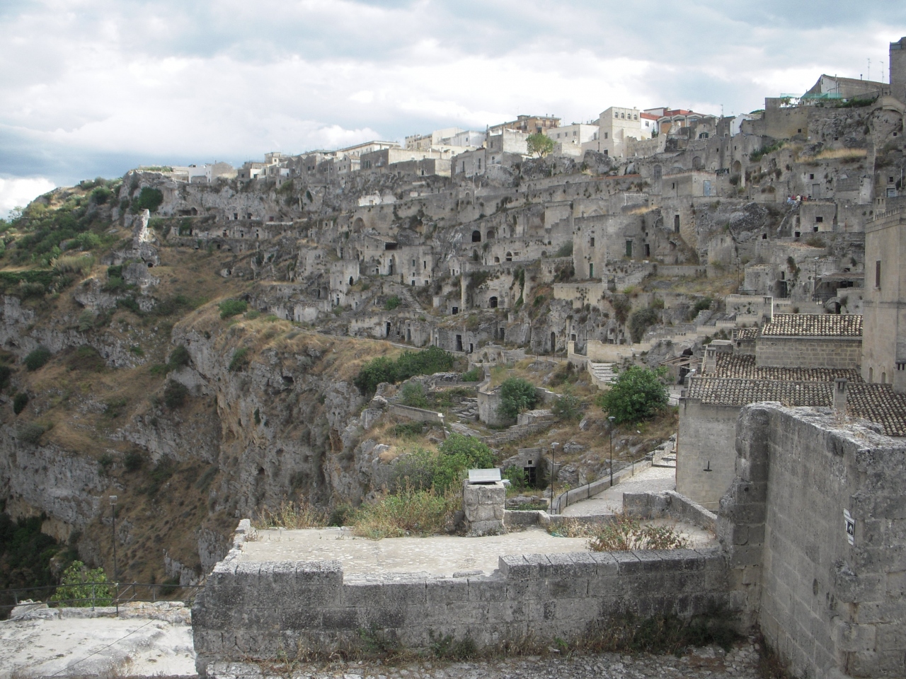 凝灰岩の岩盤に掘られた洞窟住居(Sassi)が荒々しい大地の中で寂しげな雰囲気を醸し出している町並みで、洞窟住居(Sassi)はいつからできたかは不明ですが、8から13世紀からキリスト教の修道士が住み着いたそうです。