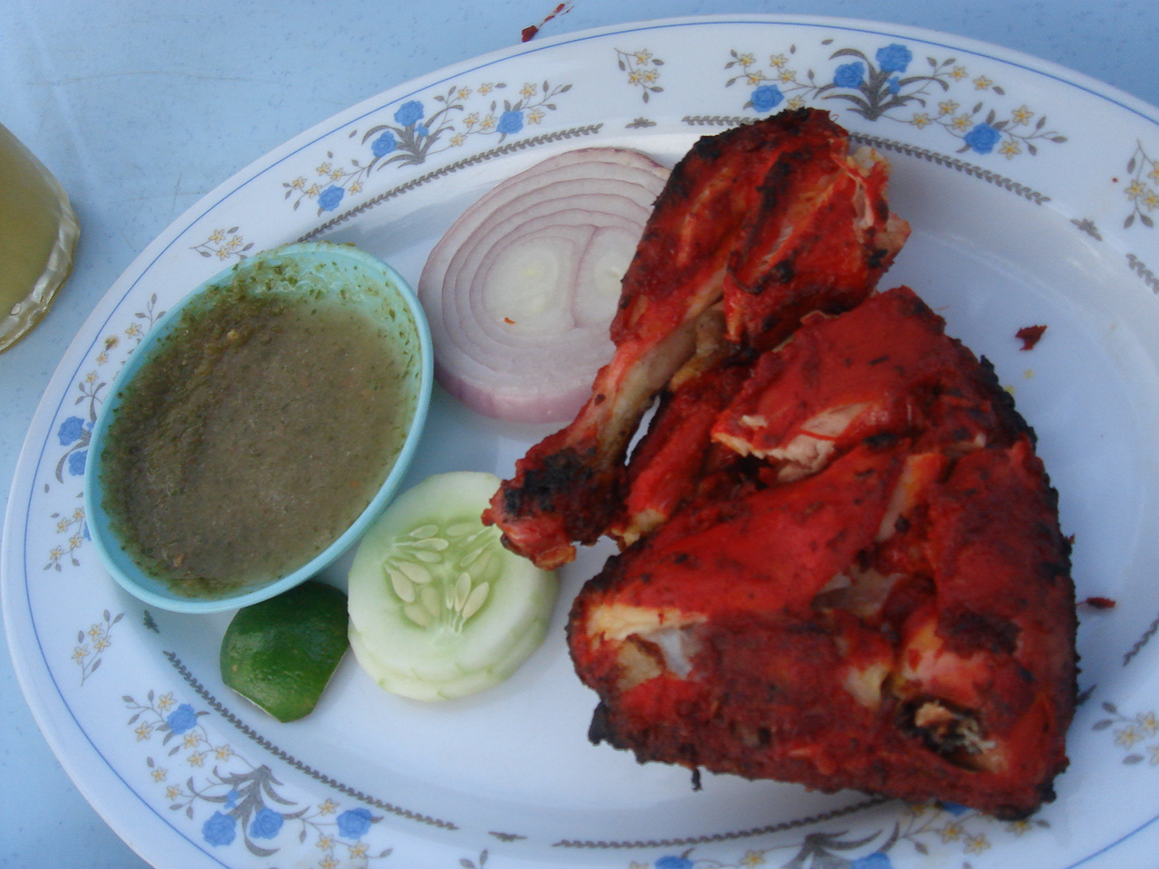 週末だったせいか、平日もこんなに大繁盛なのでしょうか・・・お店の前にはプラスチックのテーブルとイスがビアガーデンのように並べられ大勢のお客さんが座ってタンドリーチキンを楽しんでいました。