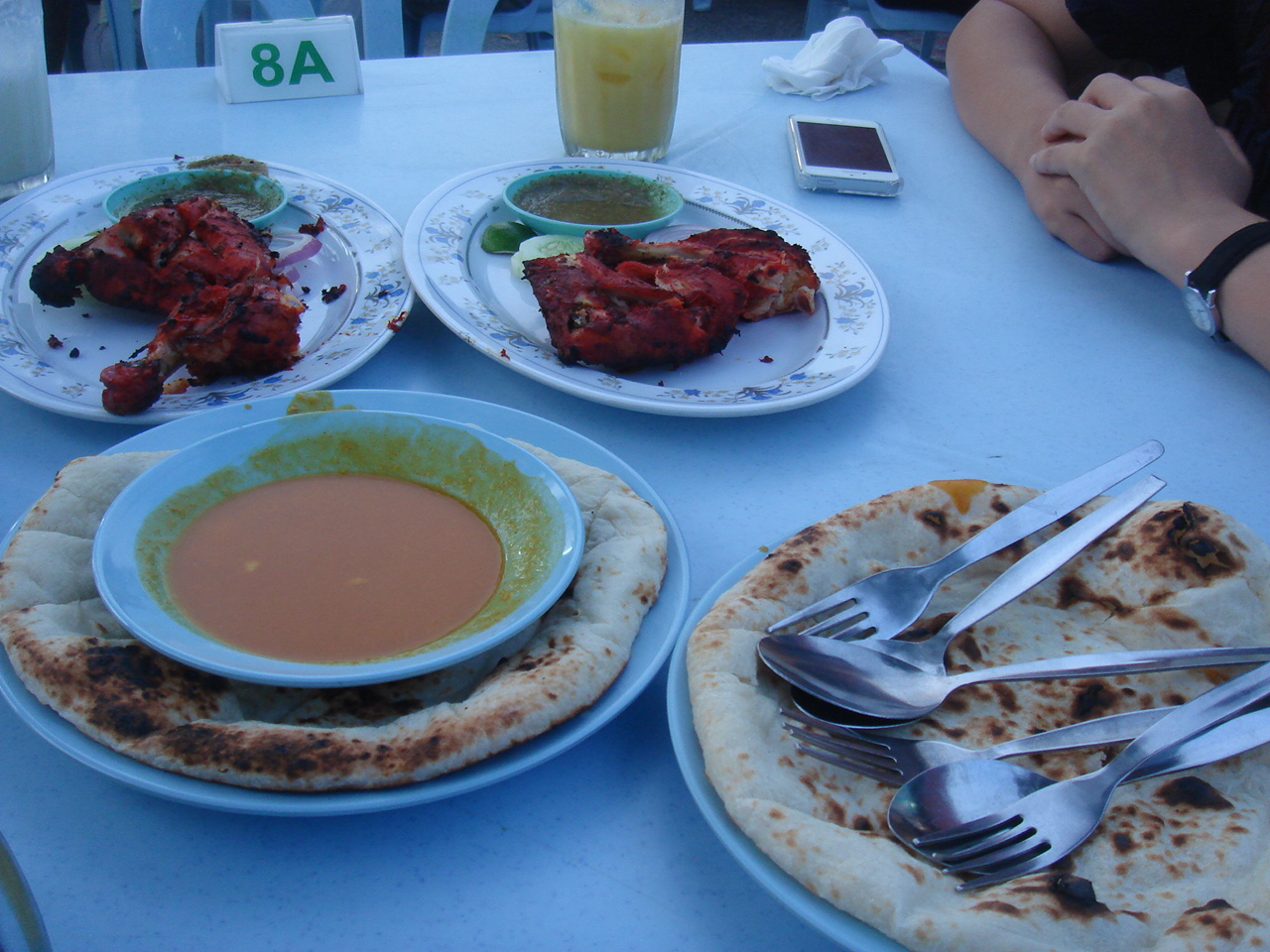 夕暮れにビアガーデン風な外でのインド料理。マラッカに行かれたら、お薦めです。