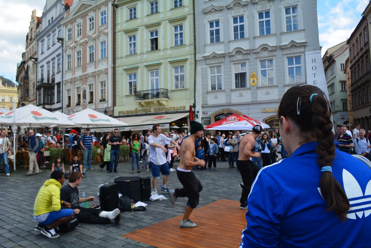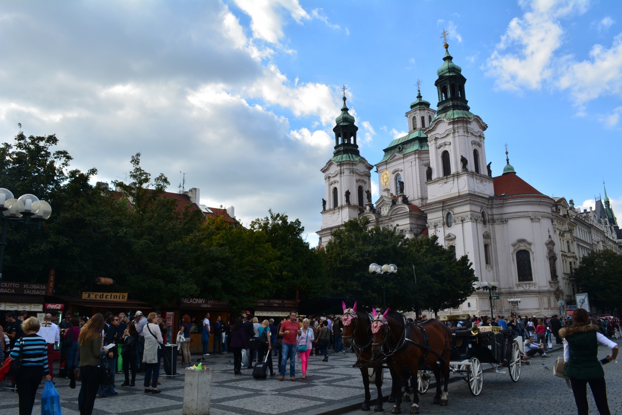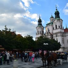 広場を囲むように古い建造物や飲食店が立ち並んでいます。