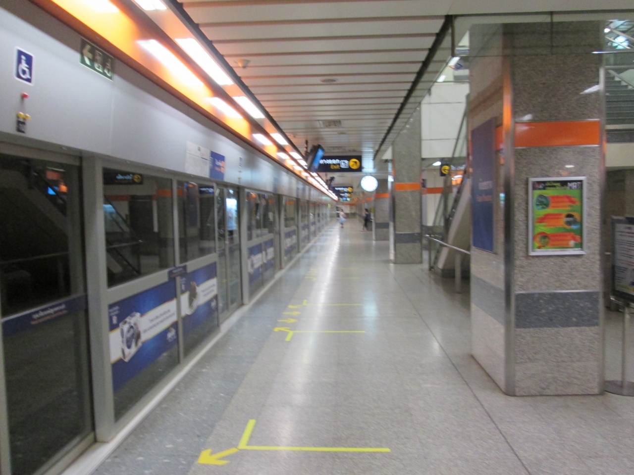 MRTの券売機はタイ語と英語が対応しており、右上の英語ボタンを押すと初心者でも簡単に操作できます。札は利用できますが、20バーツ札等はチップで使いますので残しておき、10、5、1バーツコインを消費しましょう。
