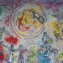 ボックスカー・モザイクという愛称と聞きましたが、シャガールらしい淡い色使いと空想的な描写が楽しいです。