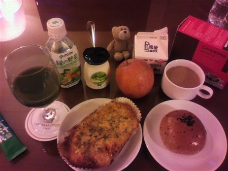 ツナコーンチーズぱんみたいのと、あんぱん風なのを買い、無事に部屋で朝食。