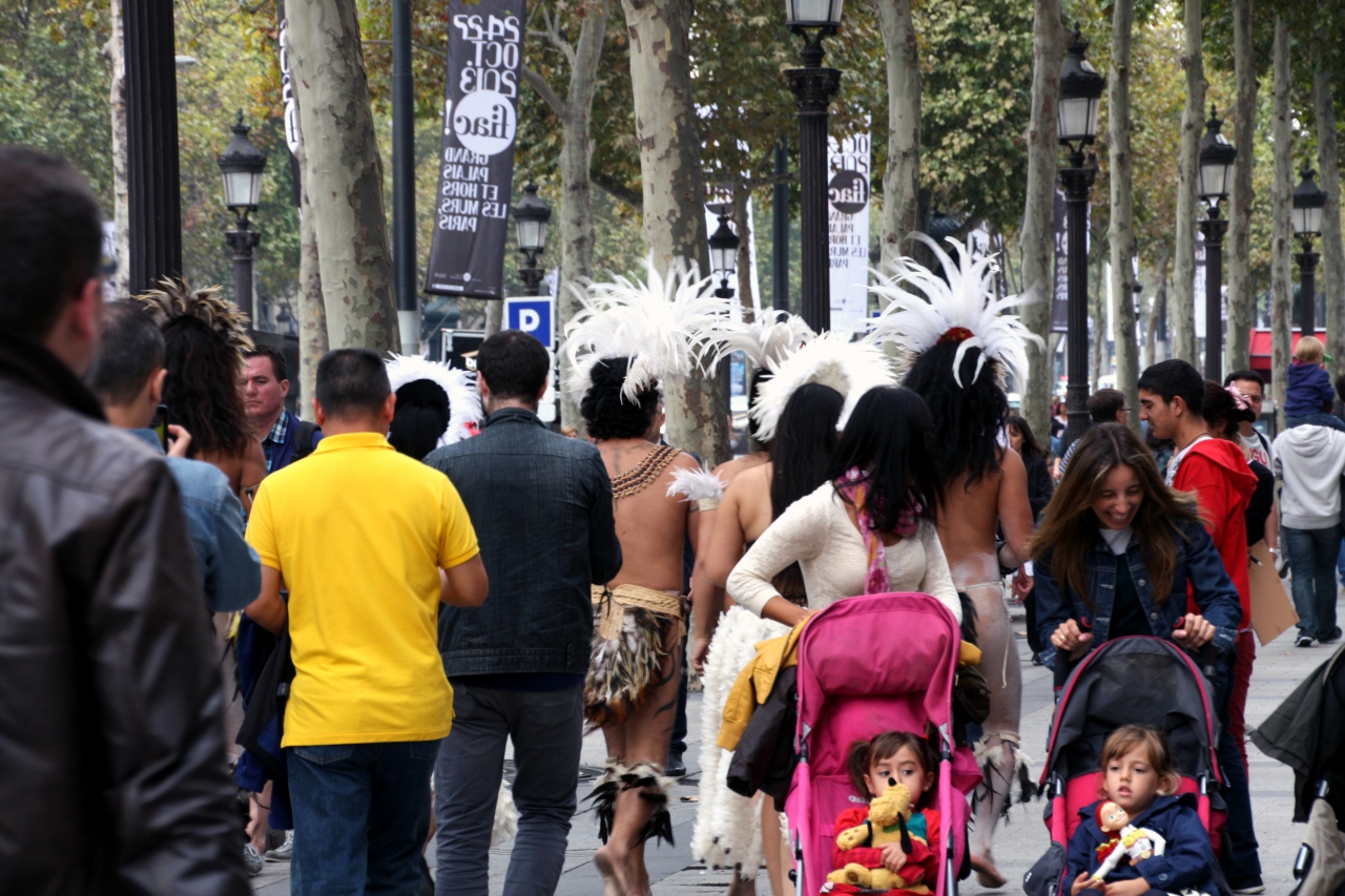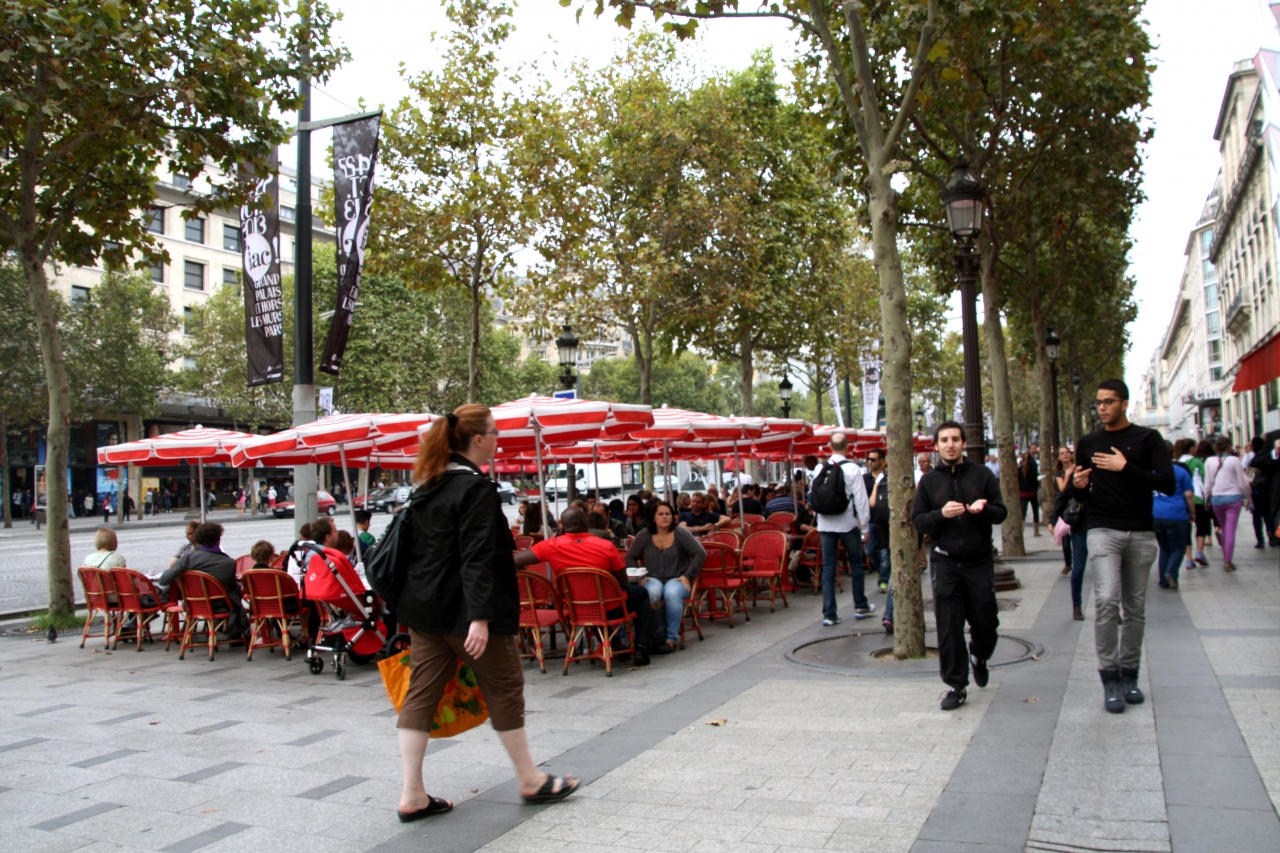 で、カフェ、レストランのテラス席で食事する人々や様々なファッション、人種の人々が闊歩する様子を眺めながら、ひたすら行く手に見える凱旋門に向かって歩きました。ルイ・ヴィトン(本店)、クリスチャン・ディオールといったブランドショップも軒を連ねる一方、気楽に入れるコンピューター、ゲーム関連の専門店や値頃なカフェも並んでいました。