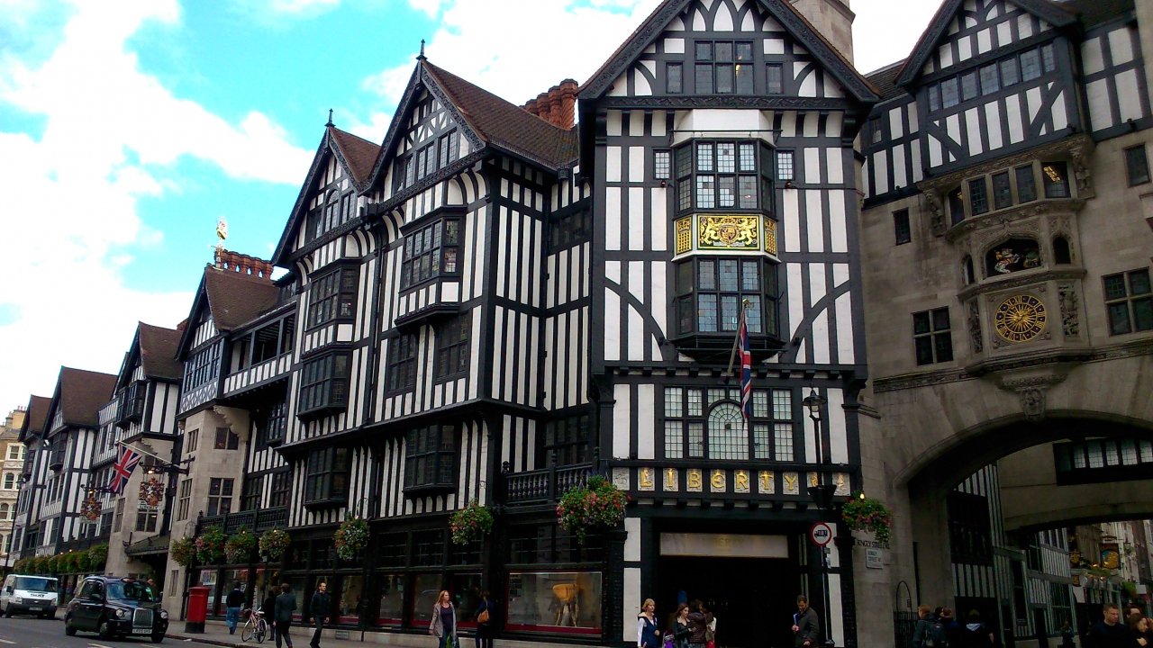 リージェント・ストリートの石造りの重厚な建物群が続く中、突如木組みの建物が現れます。
