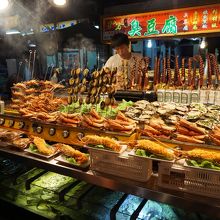 初めて夜市に行きました。日本のお祭りの屋台みたい。しかし、売っているものは 全然違う!ちょっとグロテスクな内臓系や独特の臭いの臭豆腐、フルーツジュース、靴下…なんでもあり?台湾の人は食いしん坊だそうで、みなさんいろいろ食してました。