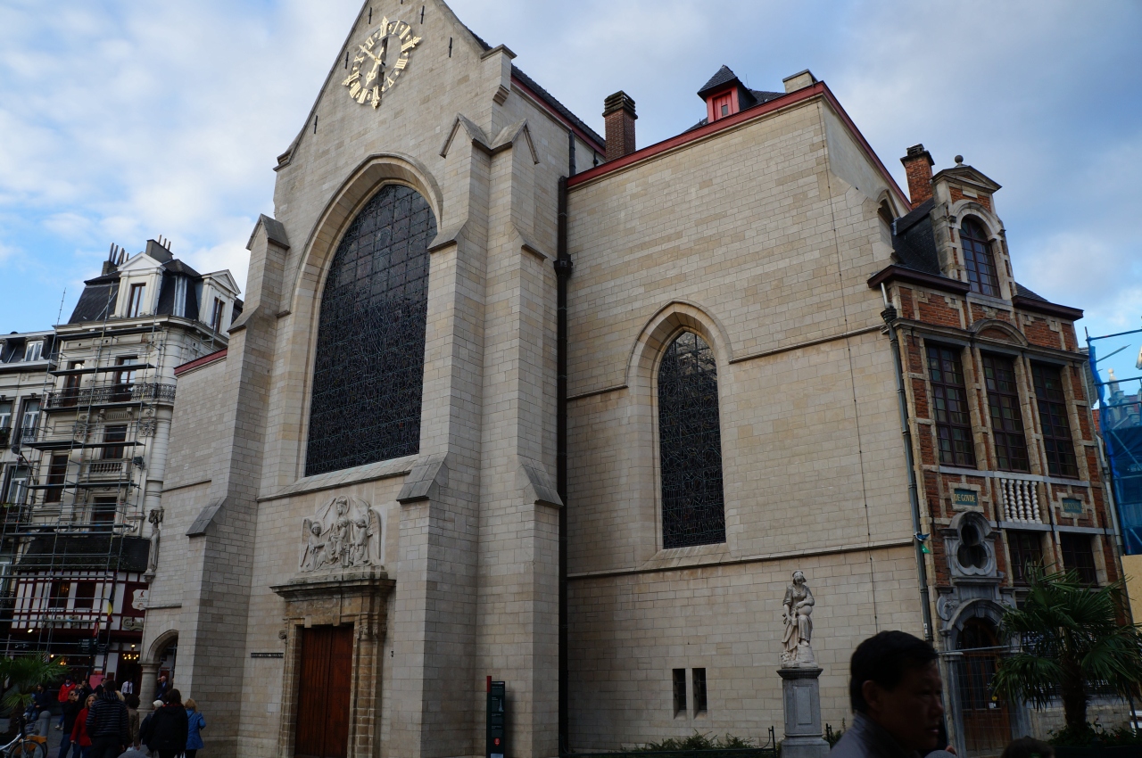 グランプラス、レストラン街の近くにある教会。中は無料で入れます。人通りの多いところに建っているので見学者は多かったです。教会の前では必ず、歌を歌っている人や楽器を演奏している人がいて、それが教会の中まで聞こえてきてとてもよい雰囲気でした。