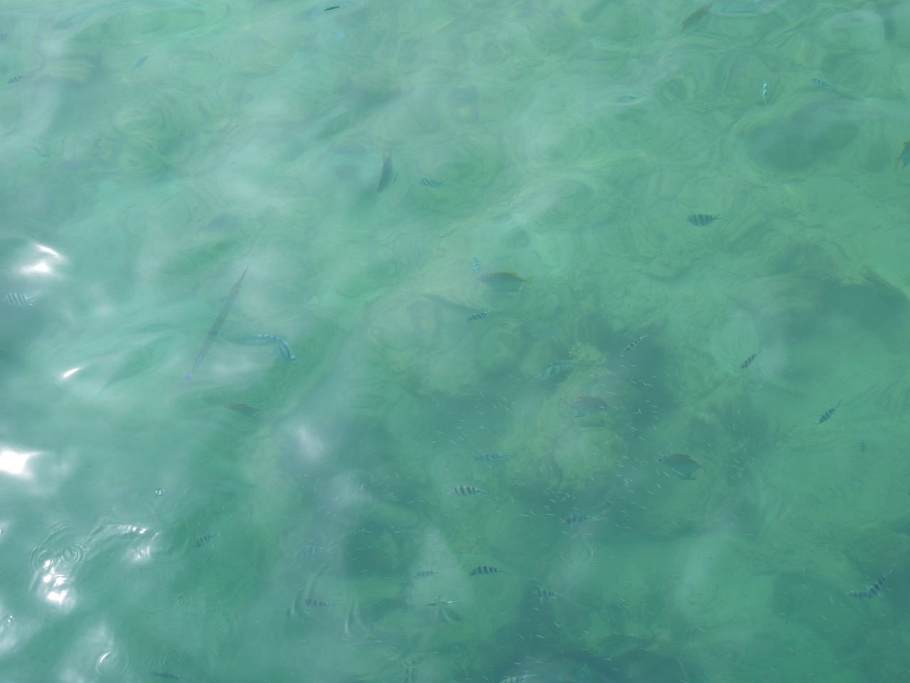 足の届くくらいの深さの所には少しピンク色かかった魚(ホワイトダムゼル)が足に噛み付いてきます。そこまで痛くはないですが、結構びっくりします。シュノーケルでのぞいていると威嚇してきます。4、5回は噛み付かれました。