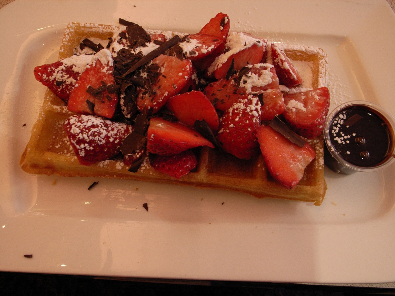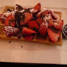 朝食後でしたが、ベルギーに来たからにはワッフルを食べない訳にはいかないという事で、専門店へ。朝の早い時間帯でしたが店内は混み合っておりましたがスムーズに案内されました。チョコとストロベリーのワッフルを注文しましたが先ず大きさにビックリしました。(大きいです)食べた感想は、食べごたえがありながらも中は柔らかく、大きさを物ともせずペロリと食べきれました。