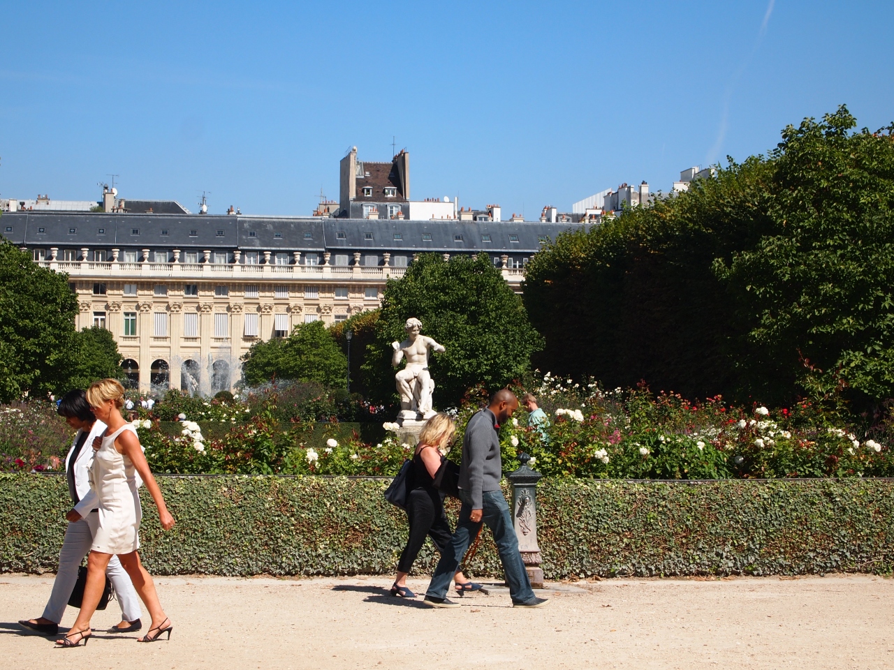 パレロワイヤルの中庭は木々が直線状に整然と植えられ、噴水などもあり