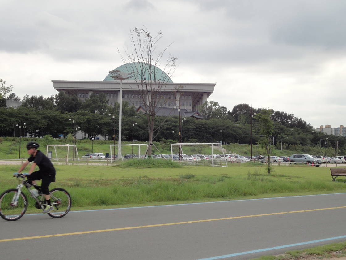 汝矣島にある緑のドーム型の屋根が独特な建物です。遠くからでもすぐにわかるかと思います。漢江沿いの公園からも近く、サイクリングロードからは間近に見ることが出来ました。夜になるとライトアップされてとても綺麗です。