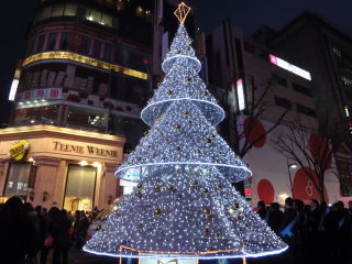 明洞の街中で一際目立つ建築物です。劇場の1Fにはカフェもありました。冬季になるとこの劇場の前にはシンプルで素敵なクリスマスツリーが現れ、ちょっとした写真撮影スポットとなります。目立つので待ち合わせにもよく使われているようで、いつもこの周辺は大変な人混みです。