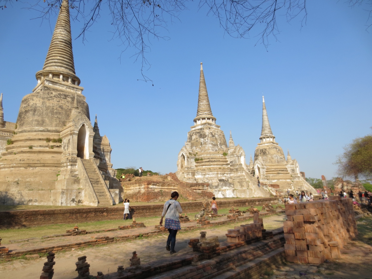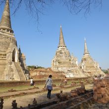 3つの高い仏塔。仏塔に登ることもできる。階段は急なので注意が必要です。