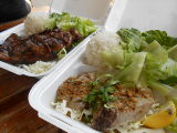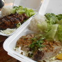 グリルドアヒステーキのミニとニューヨークステーキ、ドリンク