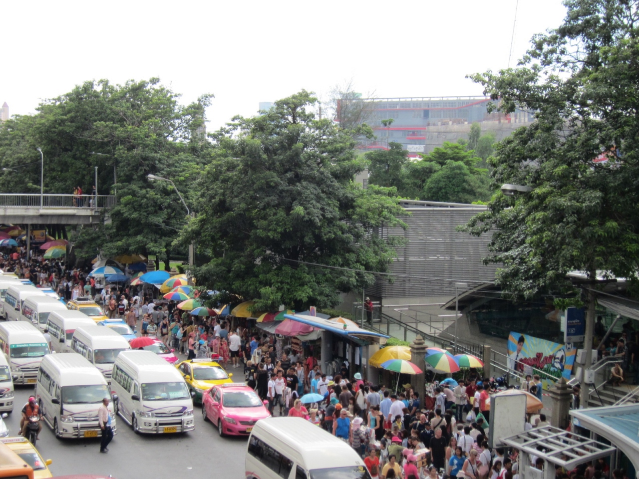 アジア最大規模の市場であるウイークエンドマーケットは、この駅を降りてすぐのところにあります。人ごみの流れに身を任せると、そこは一大ショッピングゾーン。そのため、駅では買い物目当てに来る外国人の姿をよく見かけました。