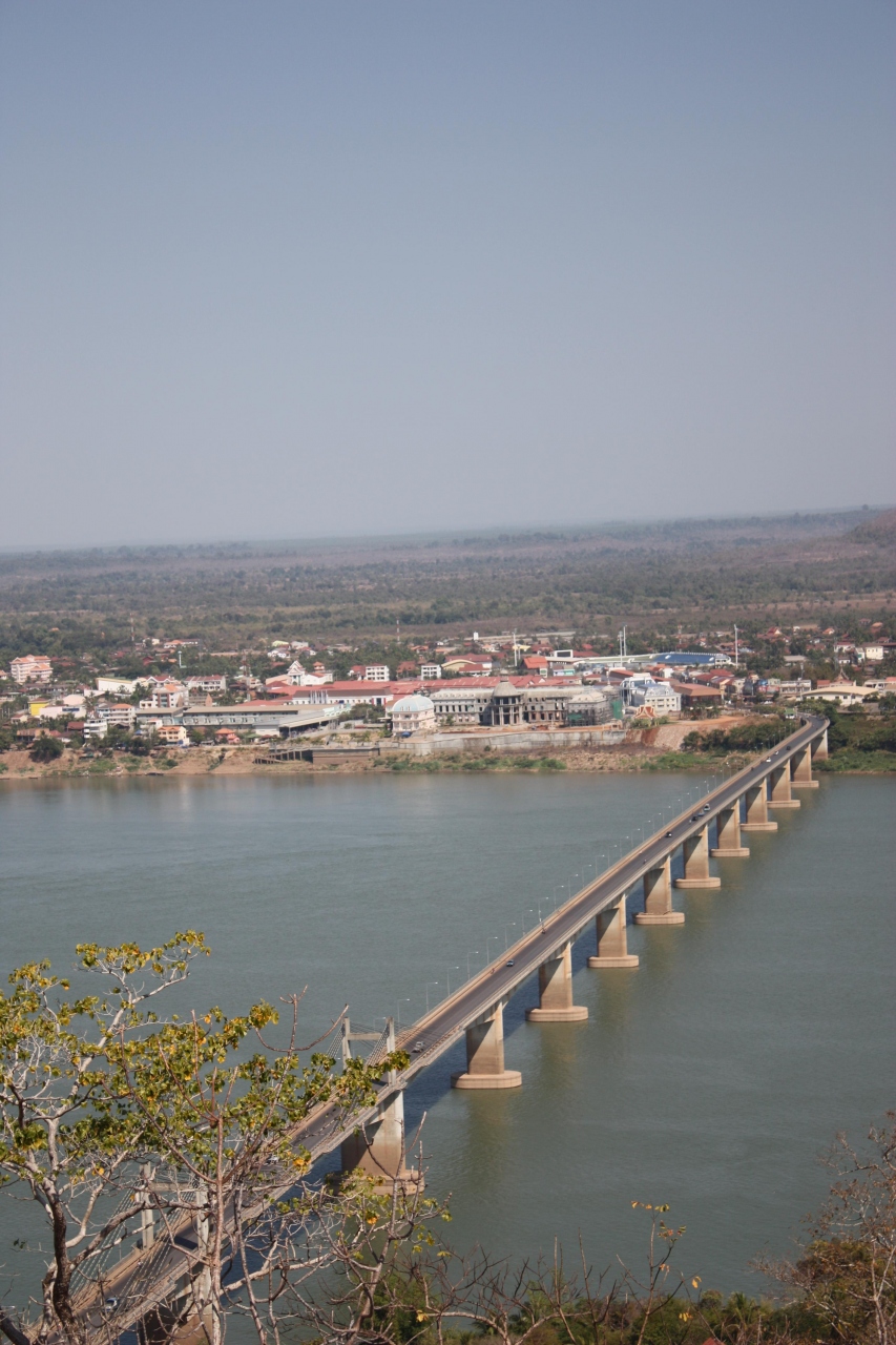 なんとか登りきって目の当たりにすると結構大きいブッダ。と振り返るとパクセ市内一望!スカイツリーからの景色より全然綺麗。